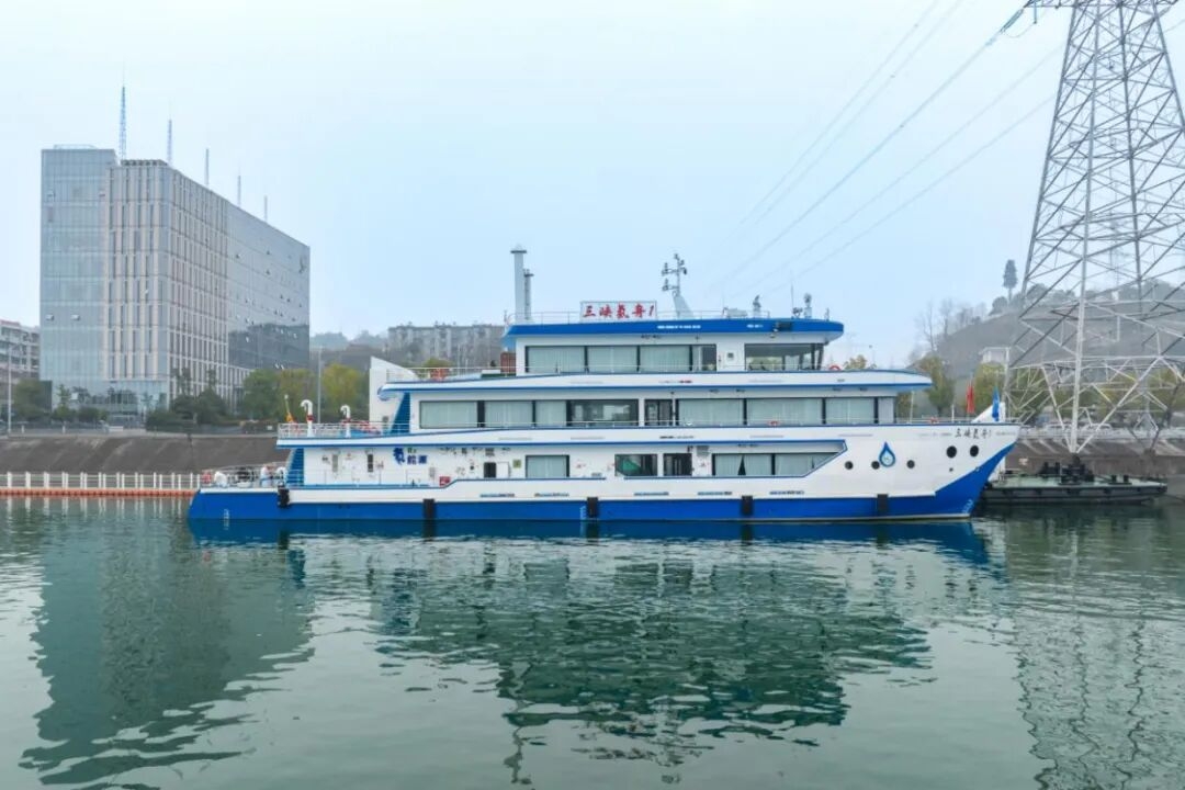 一艘外观充满未来感的白色船舶正悄然划破江面——这是我国首艘氢燃料电池动力示范船“三峡氢舟1”号。在它不远处,全球载电量最大的纯电动游轮“长江三峡1”号正满载游客,畅游高峡平湖。而在上游三峡坝区,中国首个内河码头型制氢加氢一体站正在忙碌运作。这里加注的氢,都源自三峡电站发出的清洁水电,通过电解水制氢技术转化而来。