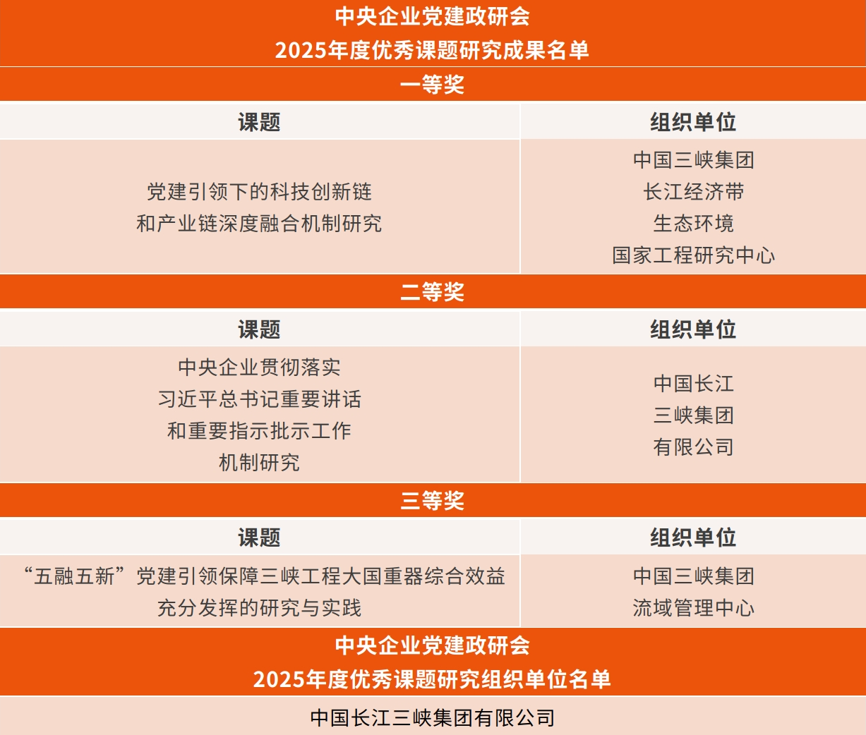 三峡集团多项成果获中央企业党建政研会表彰