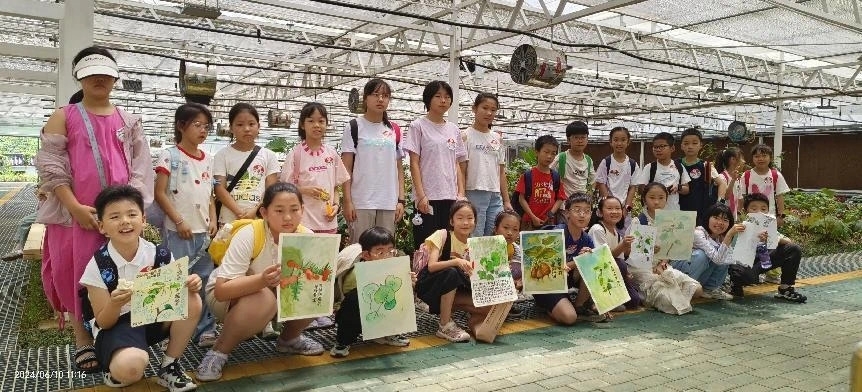 孩子们展示着“绘出植物美”的画作 摄影:胡梅香