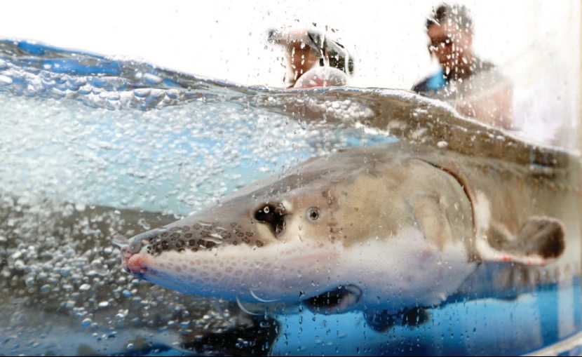 ▲等待回归长江的子二代中华鲟 摄影:郑斌