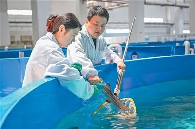 湖北宜昌,三峡大坝一侧,占地5万多平方米的长江珍稀鱼类保育中心内,一条条长约20厘米的黑色鱼苗在养殖池内欢快地摆动尾巴。科研人员仔细检查智能温控系统运行状态,逐池监测记录各项水质指标。