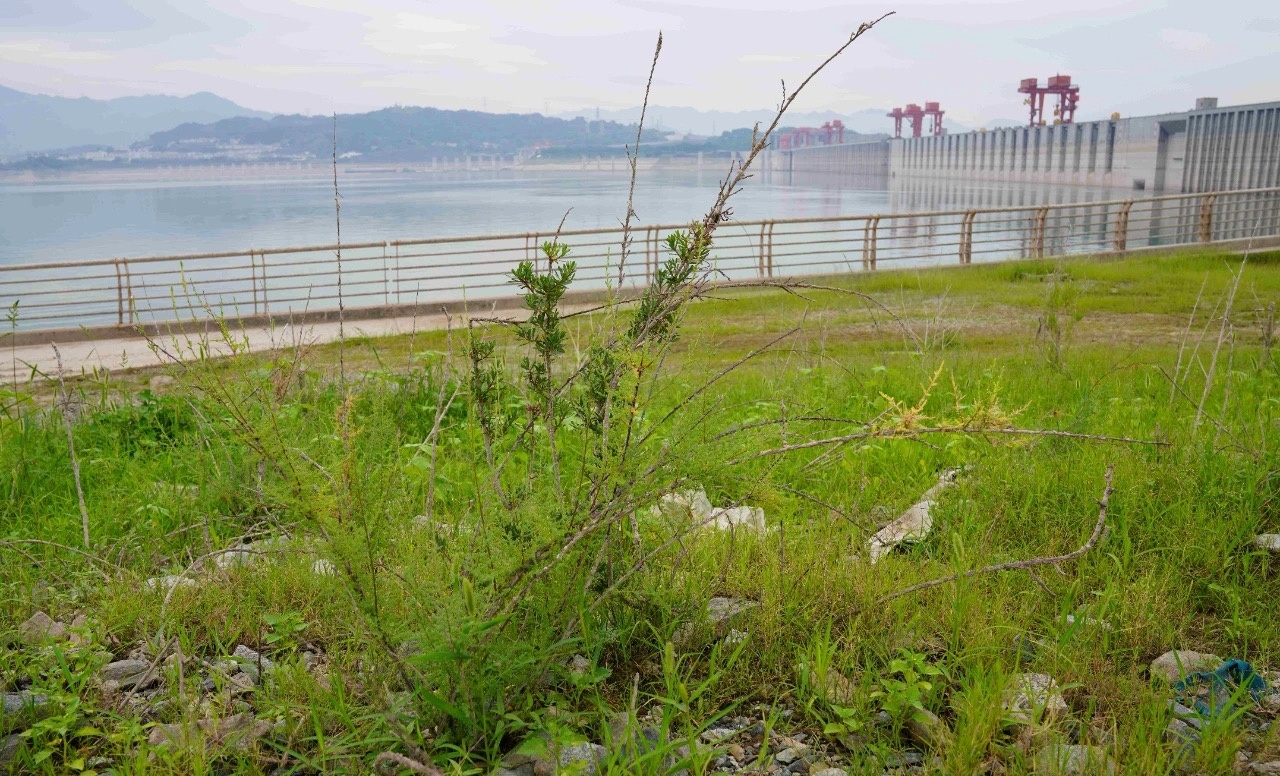 2019年,科研人员在位于三峡大坝上游、背靠湖北省秭归县茅坪镇的偏岩子岛启动了疏花水柏枝的抗逆性生长生态试验,种植区域为高程155米至175米之间的消落带区域。