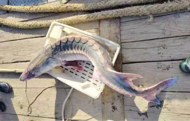 近日,“苏海门渔17608”渔船在江苏海门水域作业时,意外捕获到一尾中华鲟,经核实,该尾中华鲟为三峡集团于2024年3月28日宜昌江段放流的子二代中华鲟,据现场人员反馈,此尾中华鲟健康状况良好。