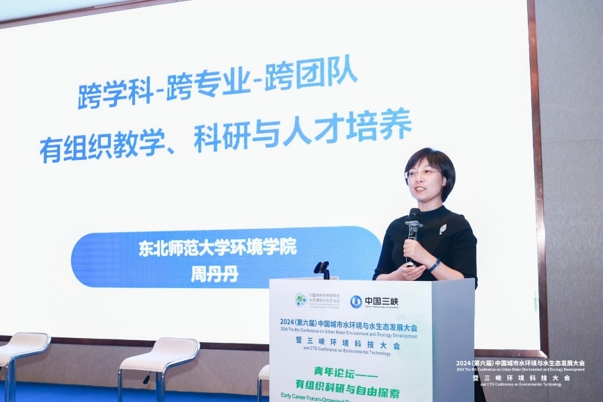本次论坛的“有组织科研”专题由清华大学环境学院刘艳臣研究员主持。首先,东北师范大学环境学院院长周丹丹教授作了题为“跨学科跨专业跨团队组织教学、科研与人才培养” 的引导报告,分享了东北师范大学环境学院促进学科交叉融合、推动有组织科研的经验和成果。东北师范大学环境学院在有组织科研方面强调跨学科、跨专业、跨团队的合作,结合环境科学与工程、生态学两大一级学科,实现理工融合。通过特色环境科学研究与生态修复实践,实现了环境和生态融合的有组织科研,结合在水治理与生态修复领域的创新实践,展示了学院在环境生态融合发展的有组织科研成果。